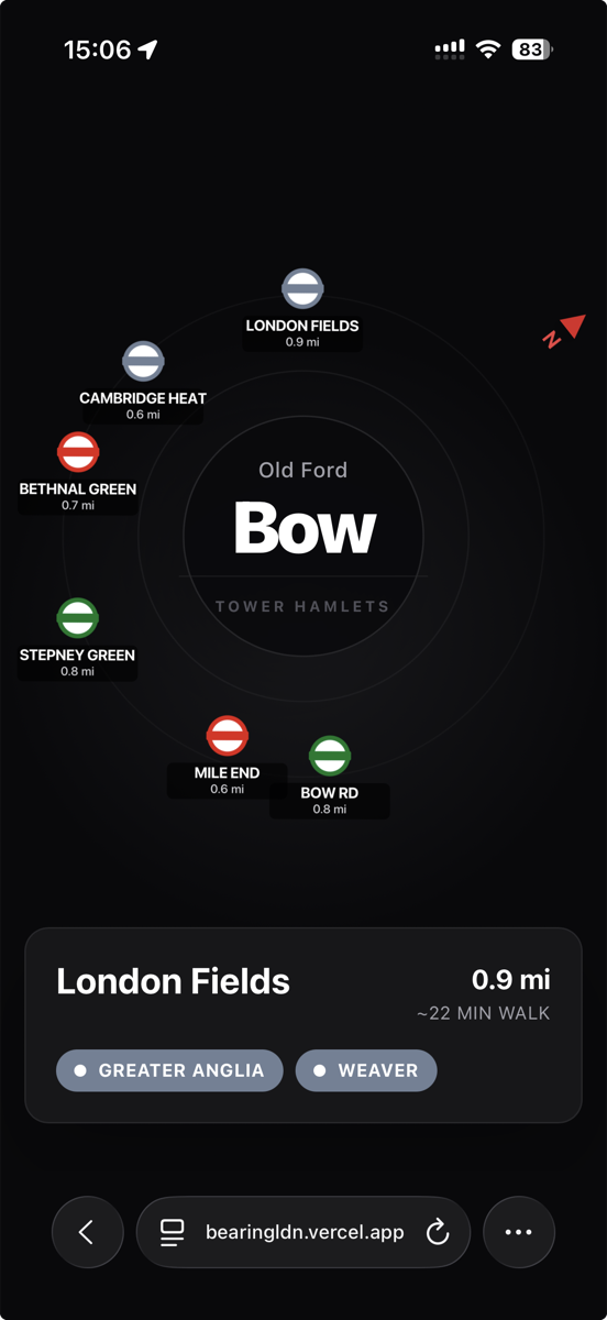 A minimalist station finder. Compass-driven proximity for the transit network.